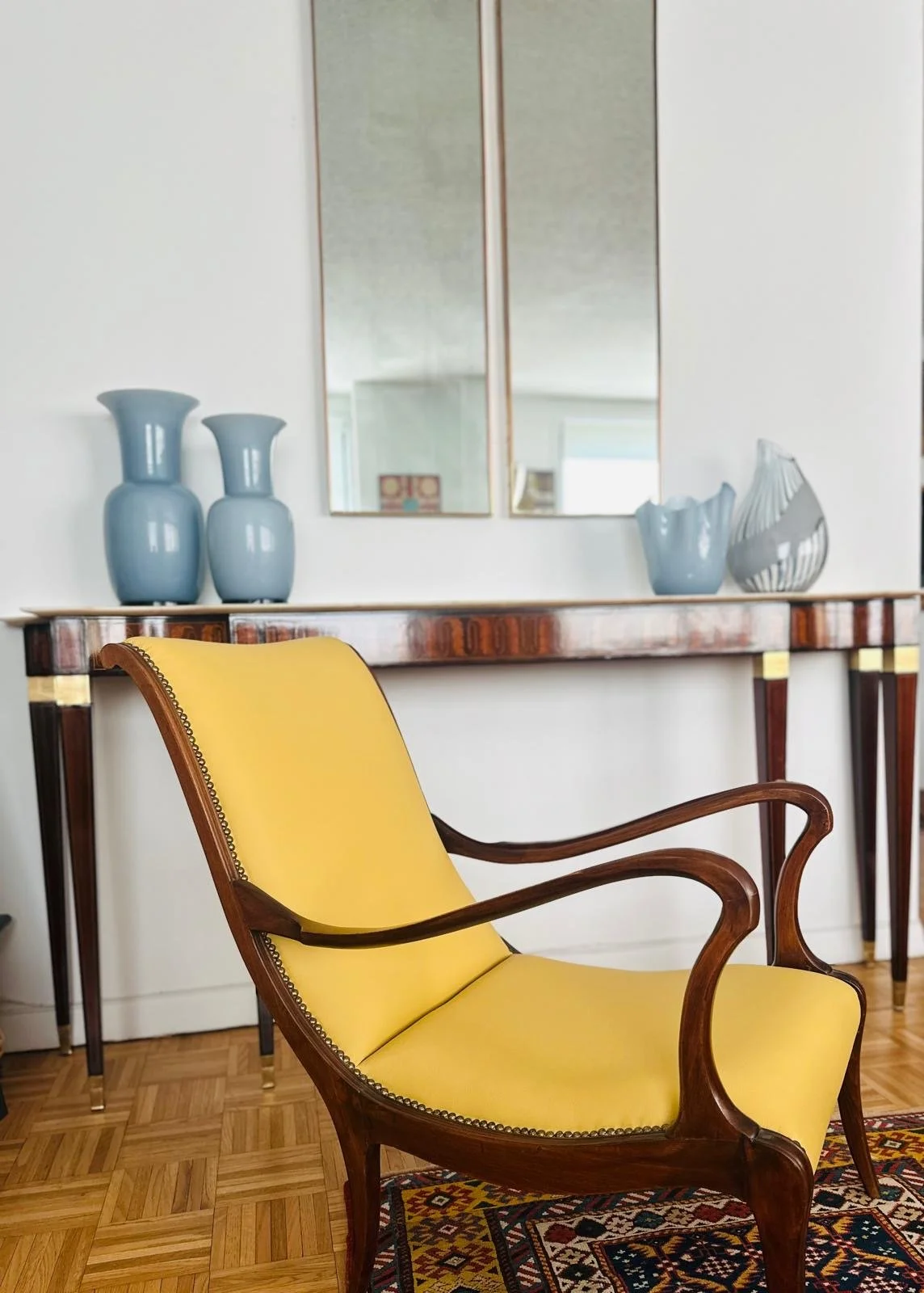 Categories: All Case Pieces & Consoles Coffee Tables Dining Chairs Desks & Chairs Games Lighting Lounge & Accent Chairs Mirrors Objects Sofas & Stools Textiles Sold All | Case Pieces & Consoles | Coffee Tables | Dining Chairs | Desks & Chairs | Games | Lighting | Lounge & Accent Chairs | Mirrors | Objects | Sofas & Stools | Textiles | Sold | Jan Ekselius Attributed 1970's Pair of Side Chairs Newly Upholstered in Amber Color Cotton Linen Jan Ekselius Attributed 1970's Pair of Side Chairs Newly Upholstered in Lime Green Tweed Jan Ekselius Attributed 1970's Pair of Side Chairs Newly Upholstered in White Tweed Christopher Guy Pair of 1990's Side Chairs in Mahogany With Crossed Legs and Leather Seat Paolo Buffa Console Table in Rosewood With Marble Top Executed by Atelier Serafino Arrighi, 1950's Italy Pair of 1960s Vintage Caramel Barcelona Chairs Manufactured by Robert John, Signed Ezio Longhi Attributed Pair of "Mitzi" Lounge Chairs Newly Re-Upholstered in Leather, Italy 1950. 1945 Fontana Arte & Gio Ponti Attributed Floating Mirror in Aged Brass Pair of 1937 Italian Armchairs Attributed to Gio Ponti and Newly Upholstered in Grey Velvet "Soriana" 1970's Signed Rare Three Seater Sofa by Afra & Tobia Scarpa in Original Burnt Orange Suede for Cassina, Marked First Edition 1986 Set of Four Taliesin Chairs by Frank Lloyd Wright for Cassina First Edition Pair of Taliesin Chairs by Frank Loyd by Cassina, Numbered and Signed Borge Morgensen Limited Edition Spanish Desk Chair With Arms for Fredericia in Oak With Burgundy Leather Spanish Chair Limited Edition 2020 by Borge Morgensen & Fredericia in Limited Edition Deep Red Saddle Leather Gio Ponti 1950s Wingback Lounge Chair With Aged Brass Legs and Tweed Re-Upholstery Philippe Starck "Pratfall" 1980's Pair of Lounge Chairs in Black Lacquer and Black Leather Vittorio Dassi 1950's Star Shaped Console Table in Walnut With Glass Top 1950s First Edition Charlotte Perriand "Les Arcs" Chairs in Original Leather- Set of 4 Giovanni Offredi for Saporiti 1970's Set of 6 Dining Chairs in Chrome With Vacchetta Leather in Sand Gio Ponti for Fontana Arte 1940's Attributed Console With Curved Mahogany Legs and Glass Top Rare Alberto Dona Di Murano Floor Lamp Hand Blown in Mercury Glass Maison Du Lab Pair of Throw Pillows in Batik Black & White Vintage Fabric Vladimir Kagan Custom Commissioned 1970s Swivel Desk Chair With Lucite Frame and Italian Leather Labeled Vladimir Kagan Signed and Numbered Rare Serpentine 1970s Sofa With Brass Legs, Newly Re-Upholstered Ferdinando Meccani 1990's Corinto Coffee Table Limited Edition Guglielmo Veronesi Perla Lounge Chair for Isa Bergamo, 1950’s Newly Re-Upholstered With Matching Ottoman Maison Du Lab Pair of Pillows Designed in Hermes Gold Celestial Fabric Vladimir Kagan Signed Teardrop 1980's Leather Coffee Table With Tray Vladimir Kagan 1970's for Directional Signed Crescent Sofa in White Linen Fabric Style 4770 K Finn Juhl Rare "Model 46" Set of 4 Restored Rosewood, Teak and Leather Chairs Willy Rizzo Signed 1970s Backgammon Table and Chairs in Steel and Brass, Leather and Peccary Gio Ponti 1950's Executive Desk for Banca Nazionale Del Lavoro - Labeled & Produced in the workshop of Schirolli Joe Colombo 1980's Signed Safari Chair Model 907 in Cotton and Leather Straps Paolo Buffa 1940 Console in Walnut and Mahogany With Calacatta Colosseum Top 1950s Ico Parisi Architectural and Sculptural Double-Wide Ebonized and Blond Wood